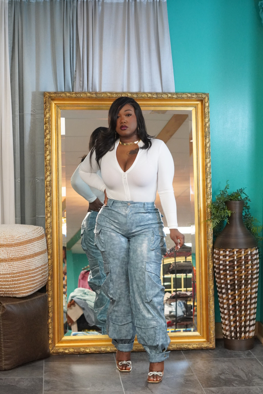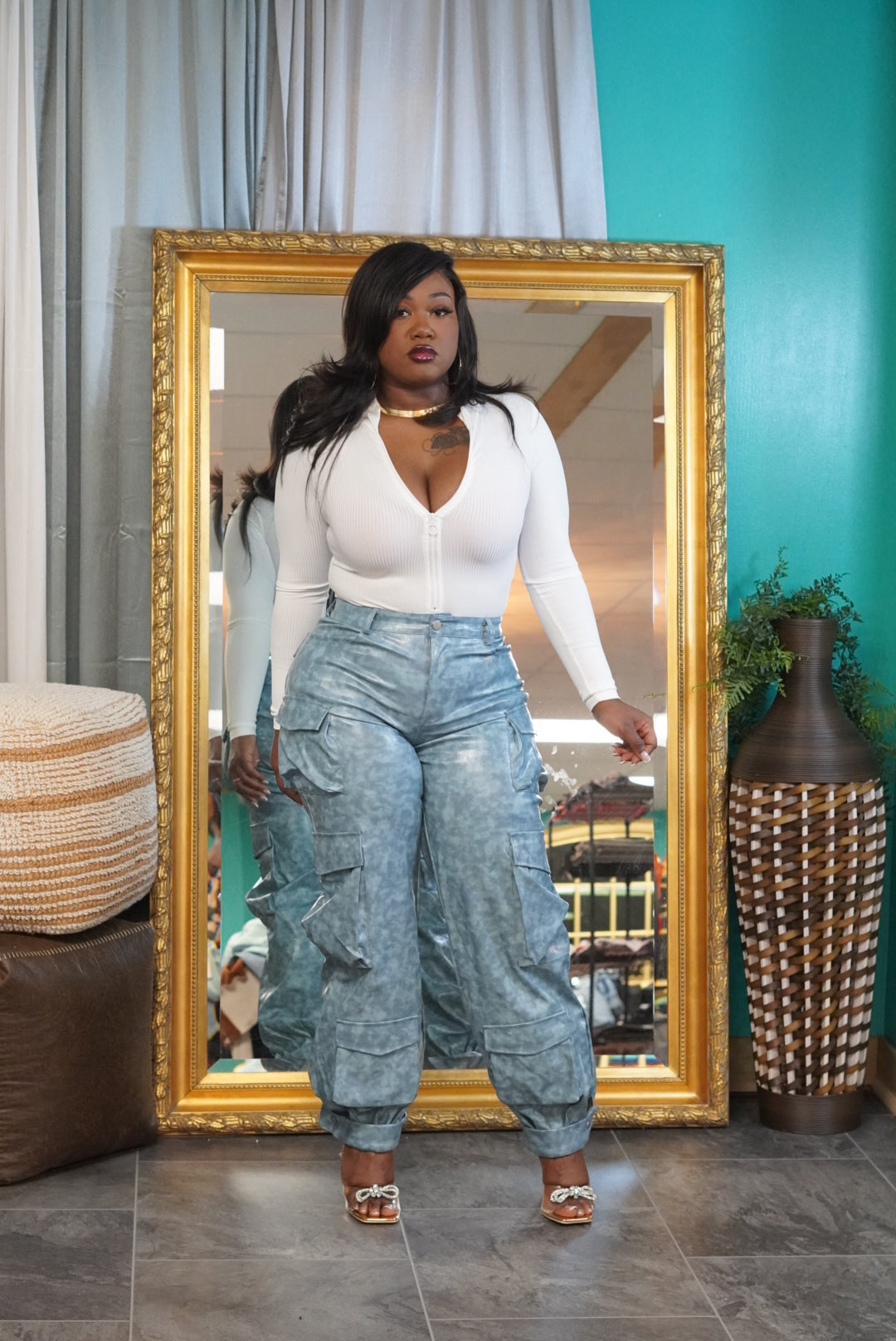 Sea blue leather pants
