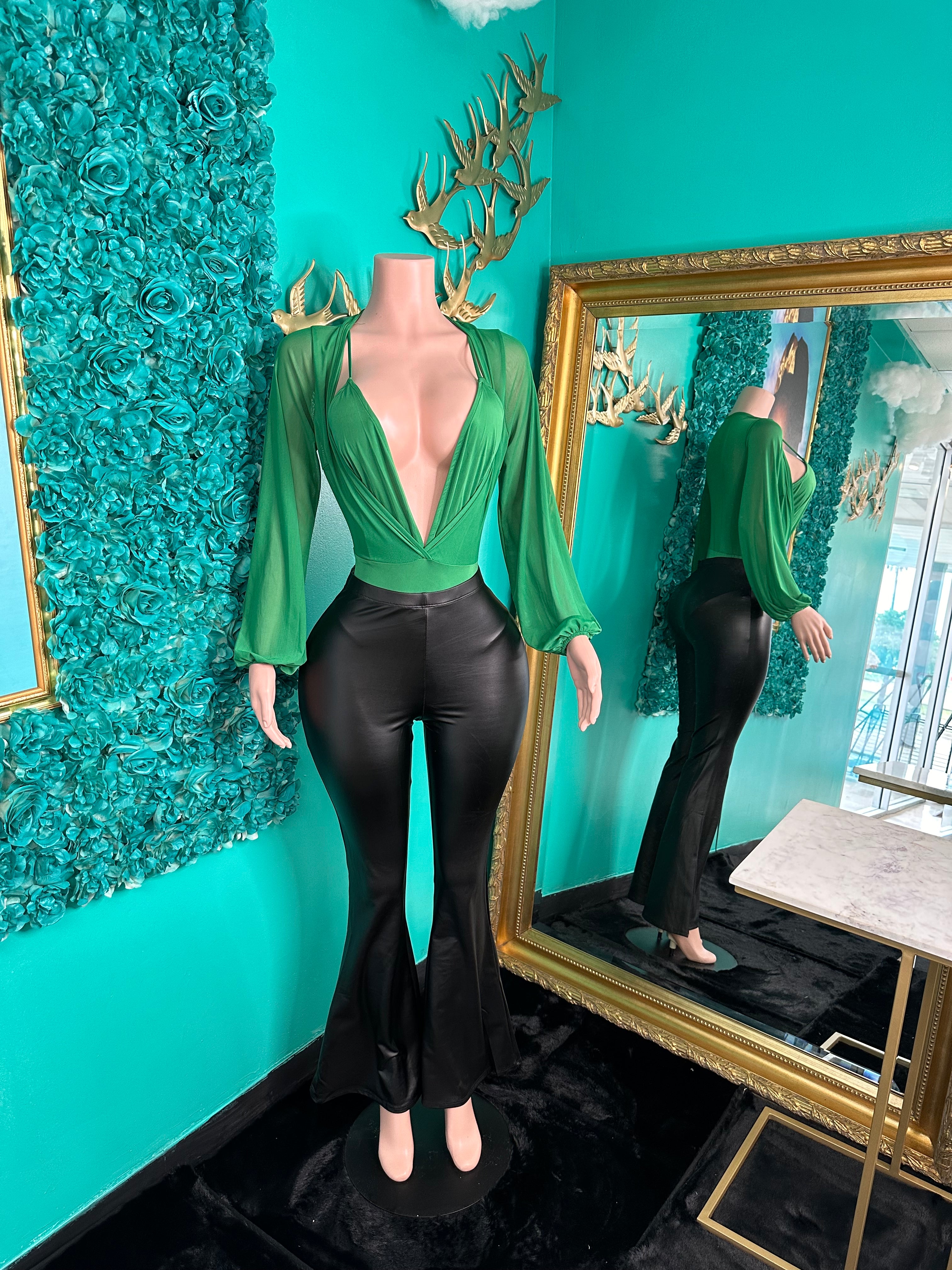 Black Leather Bell Bottoms. These pants run true to size, ensuring a comfortable fit with a vintage-inspired silhouette.