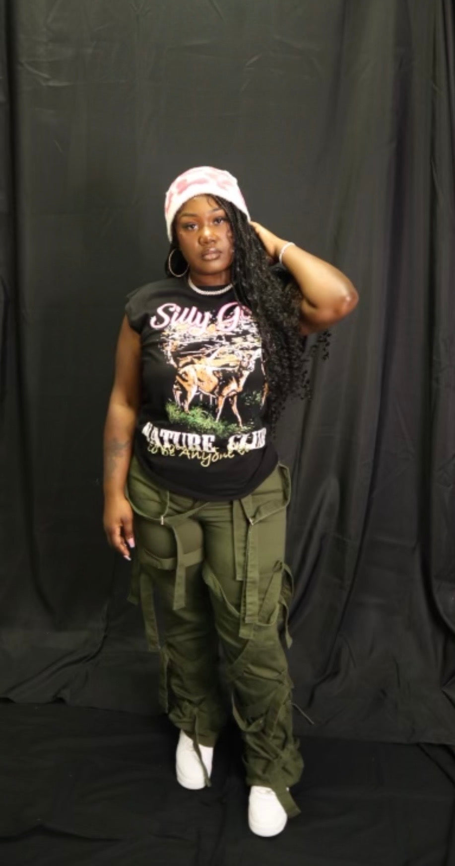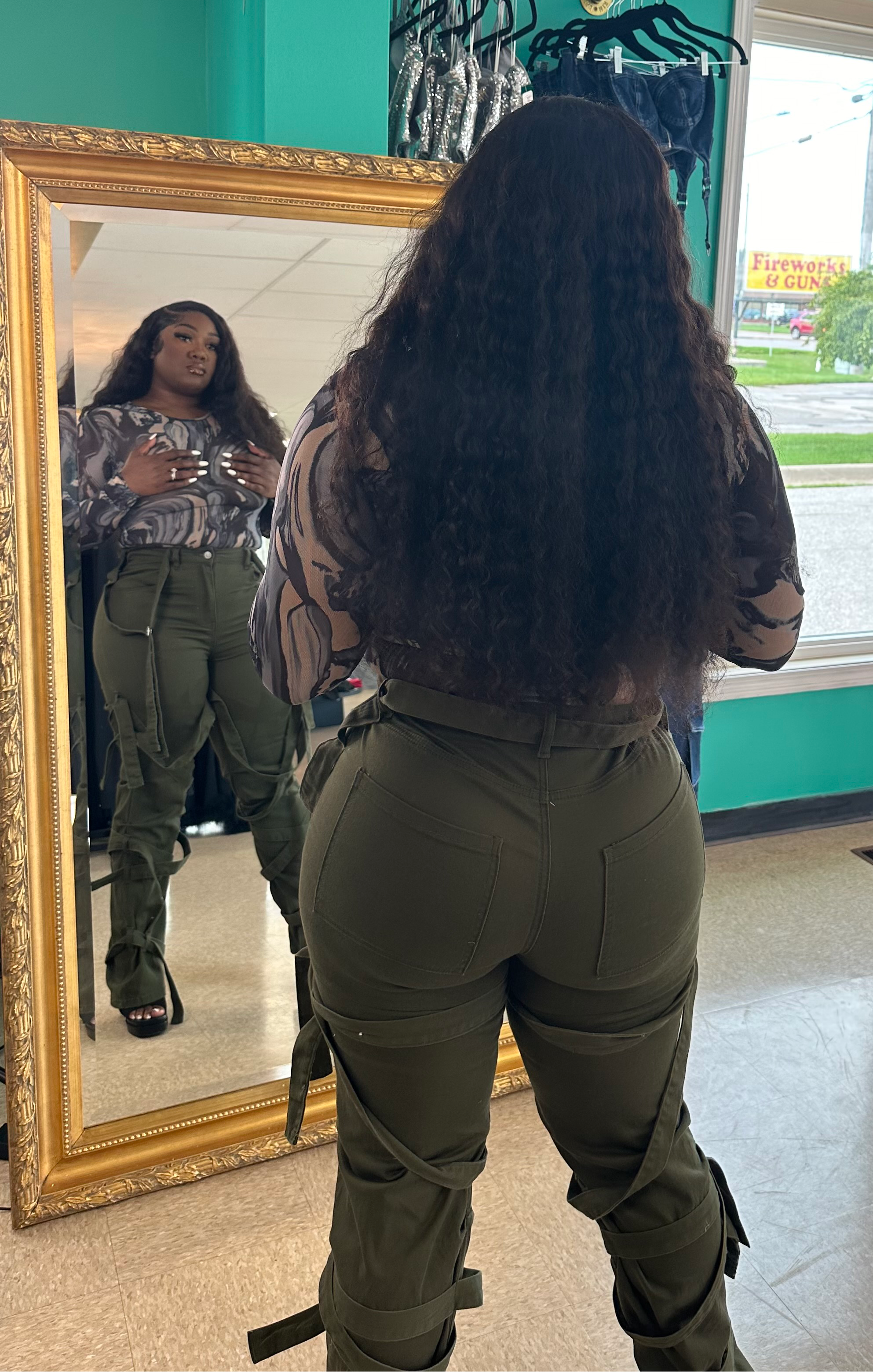 Olive Green Pants, featuring multiple straps for a trendy, edgy look. These pants run true to size