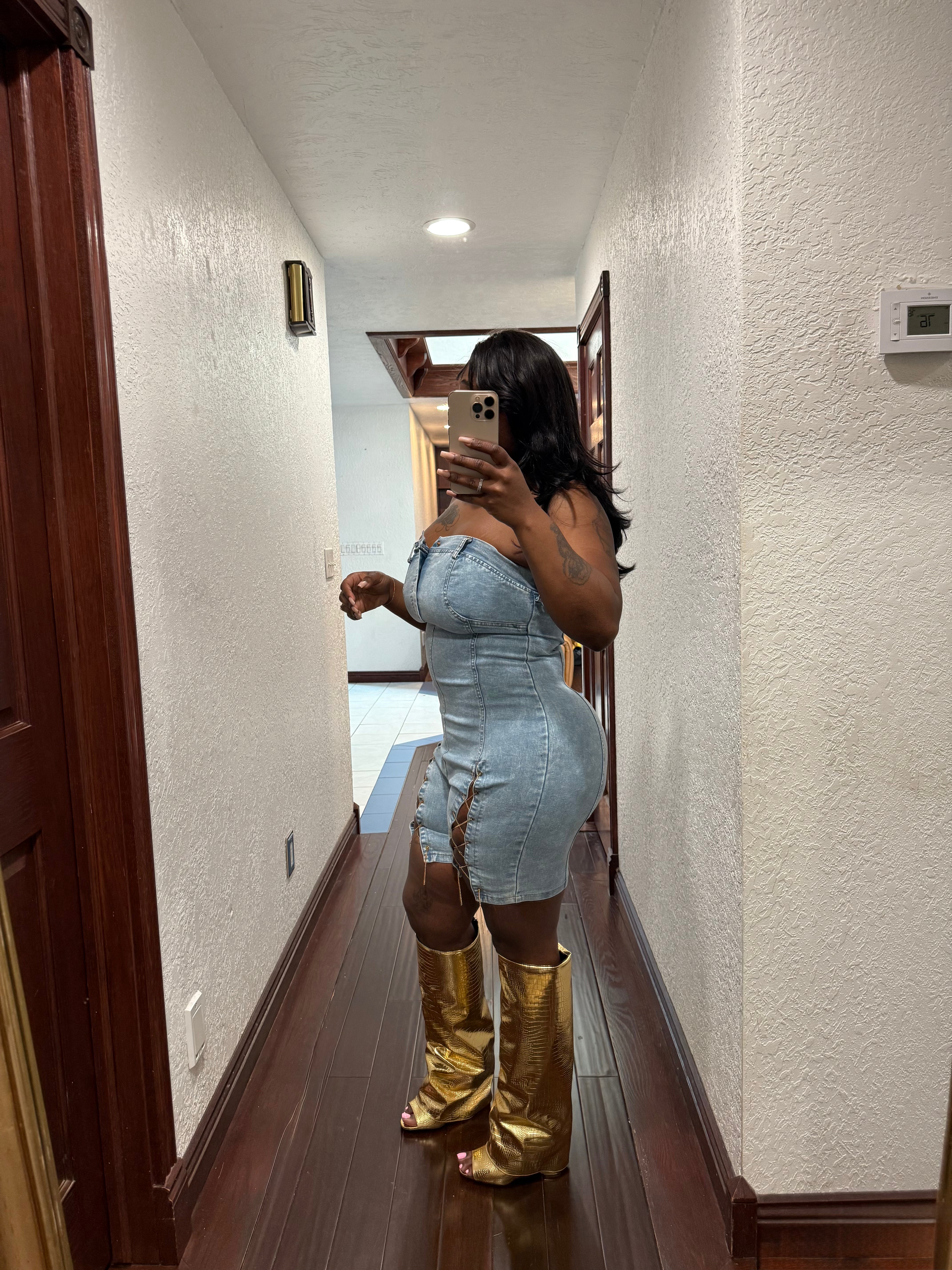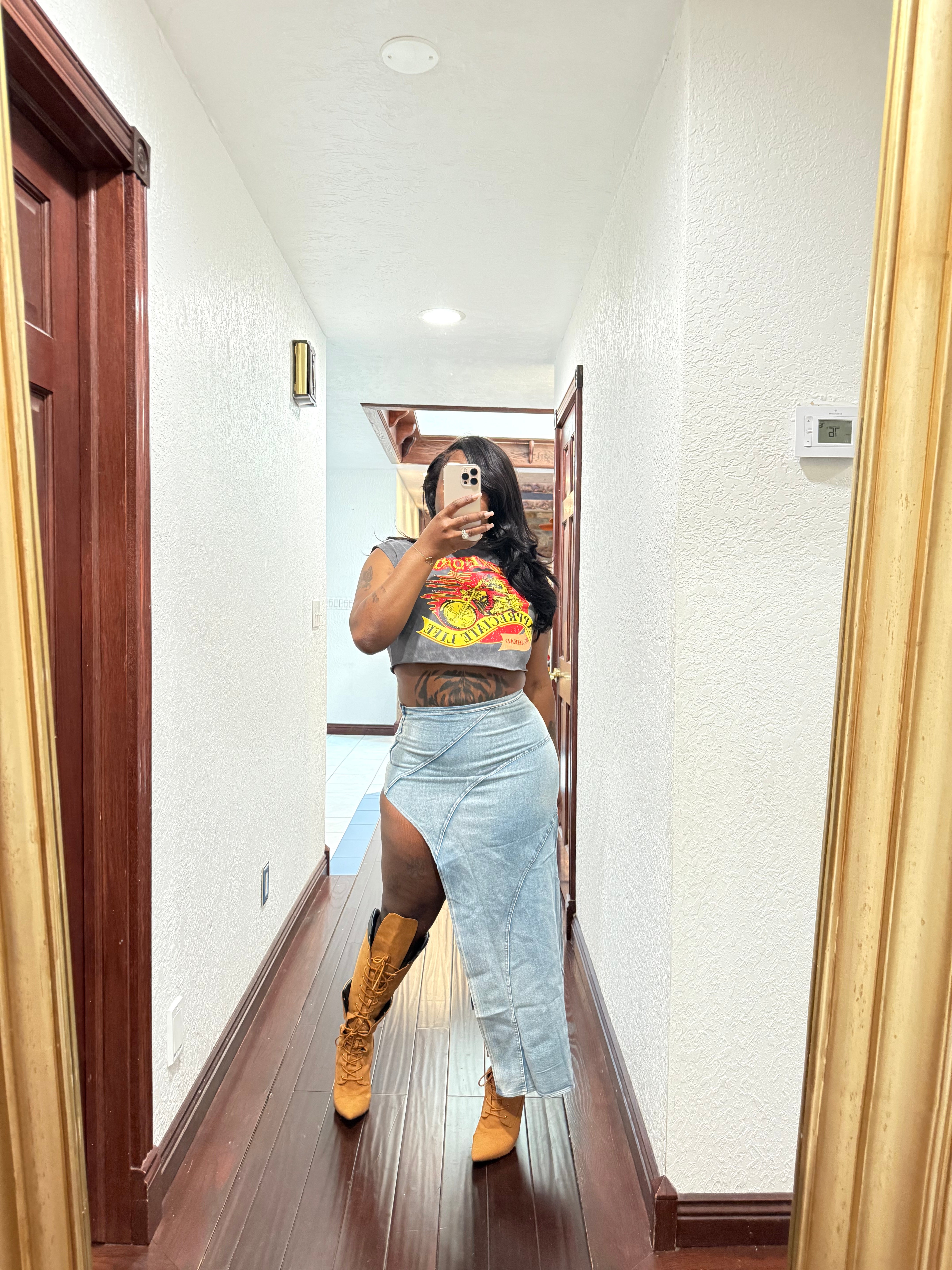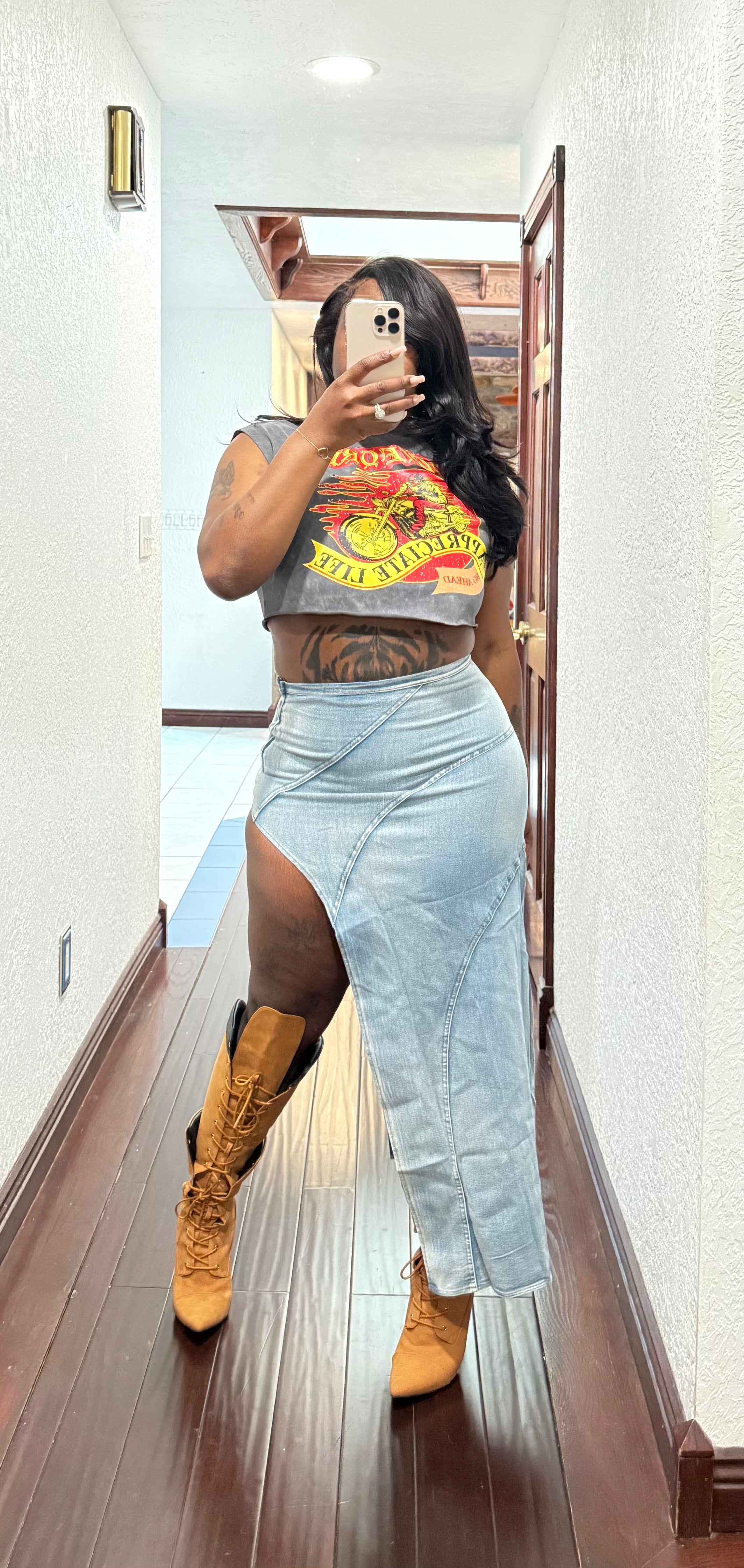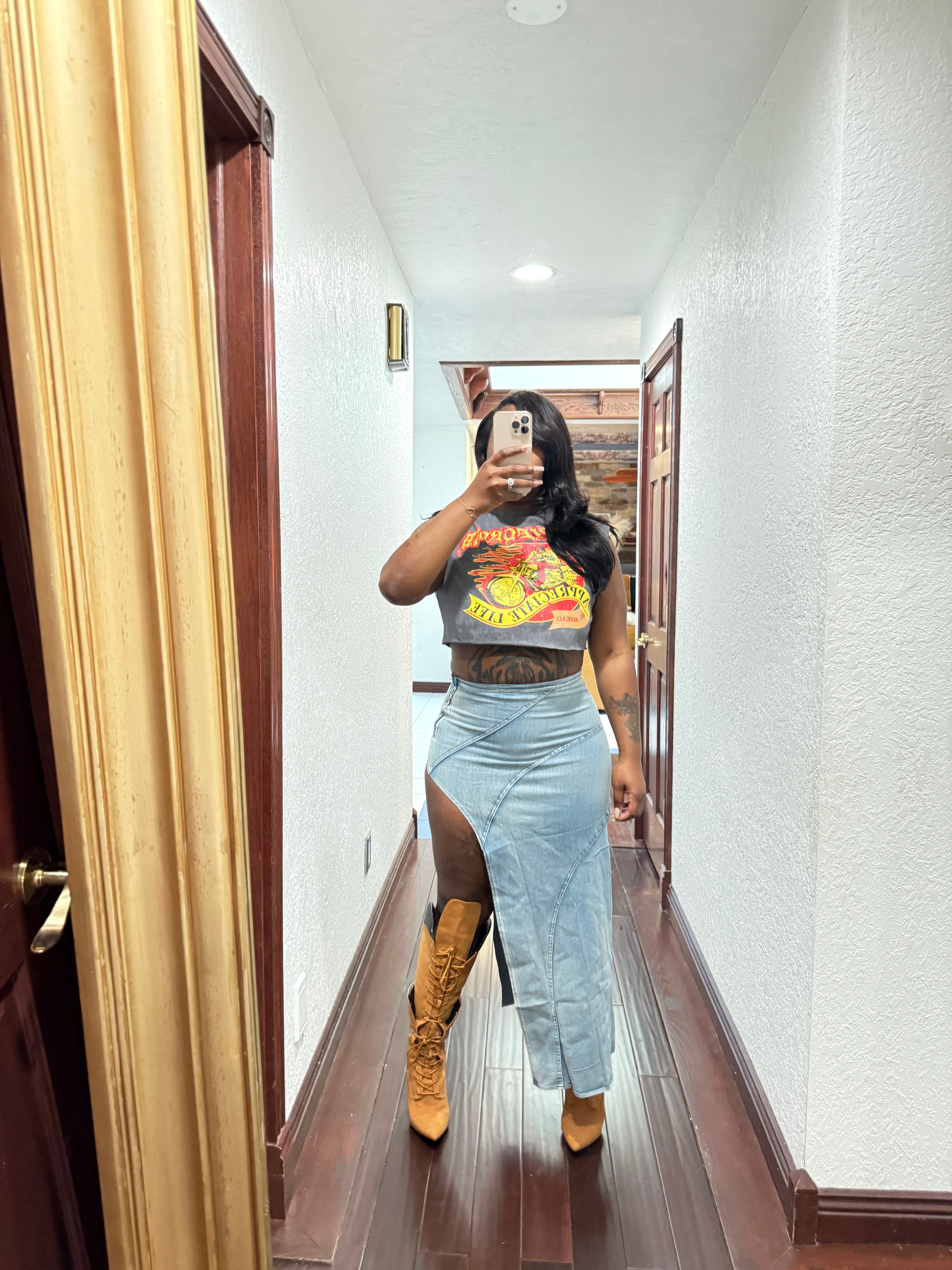 Denim side skirt