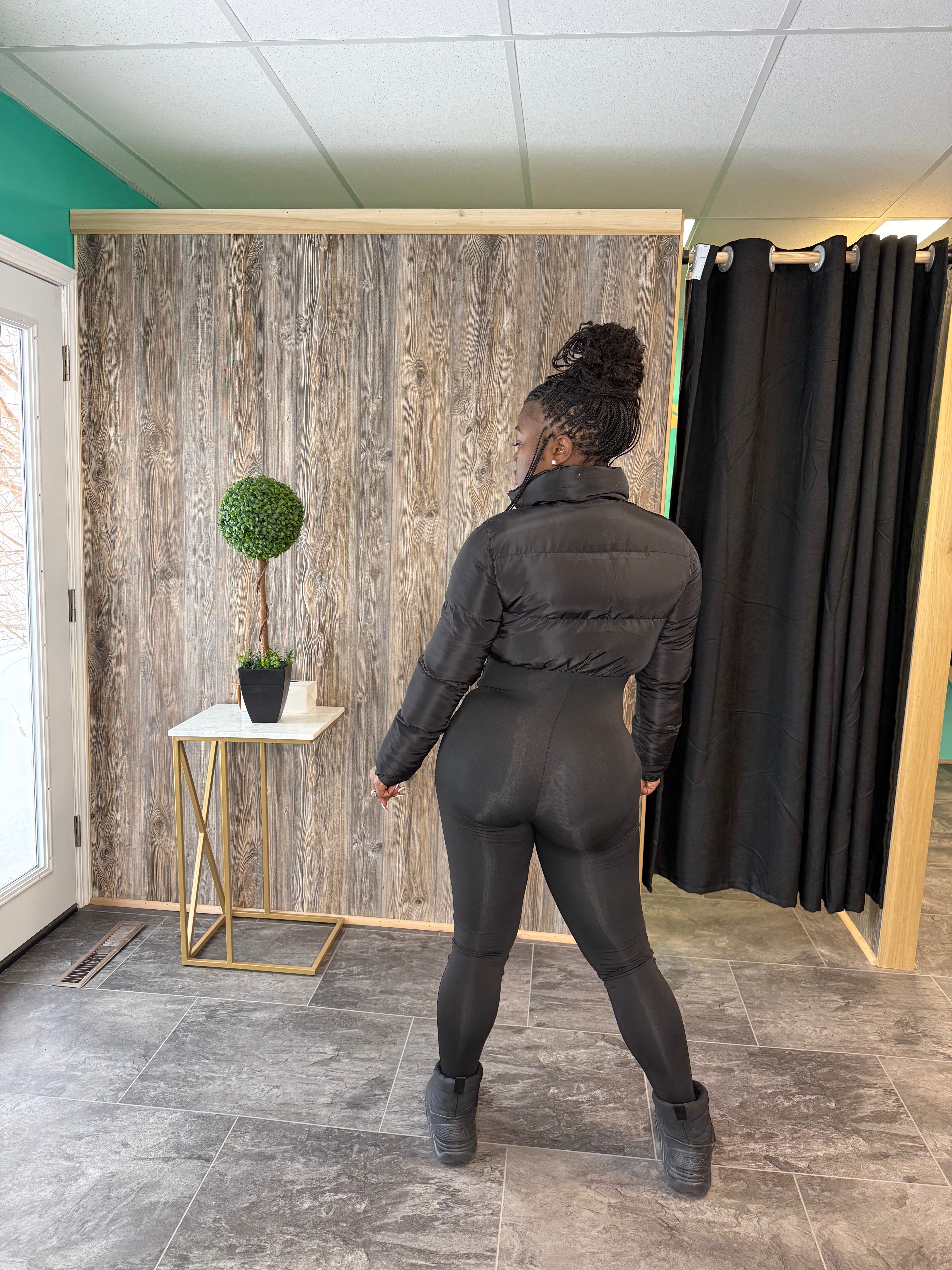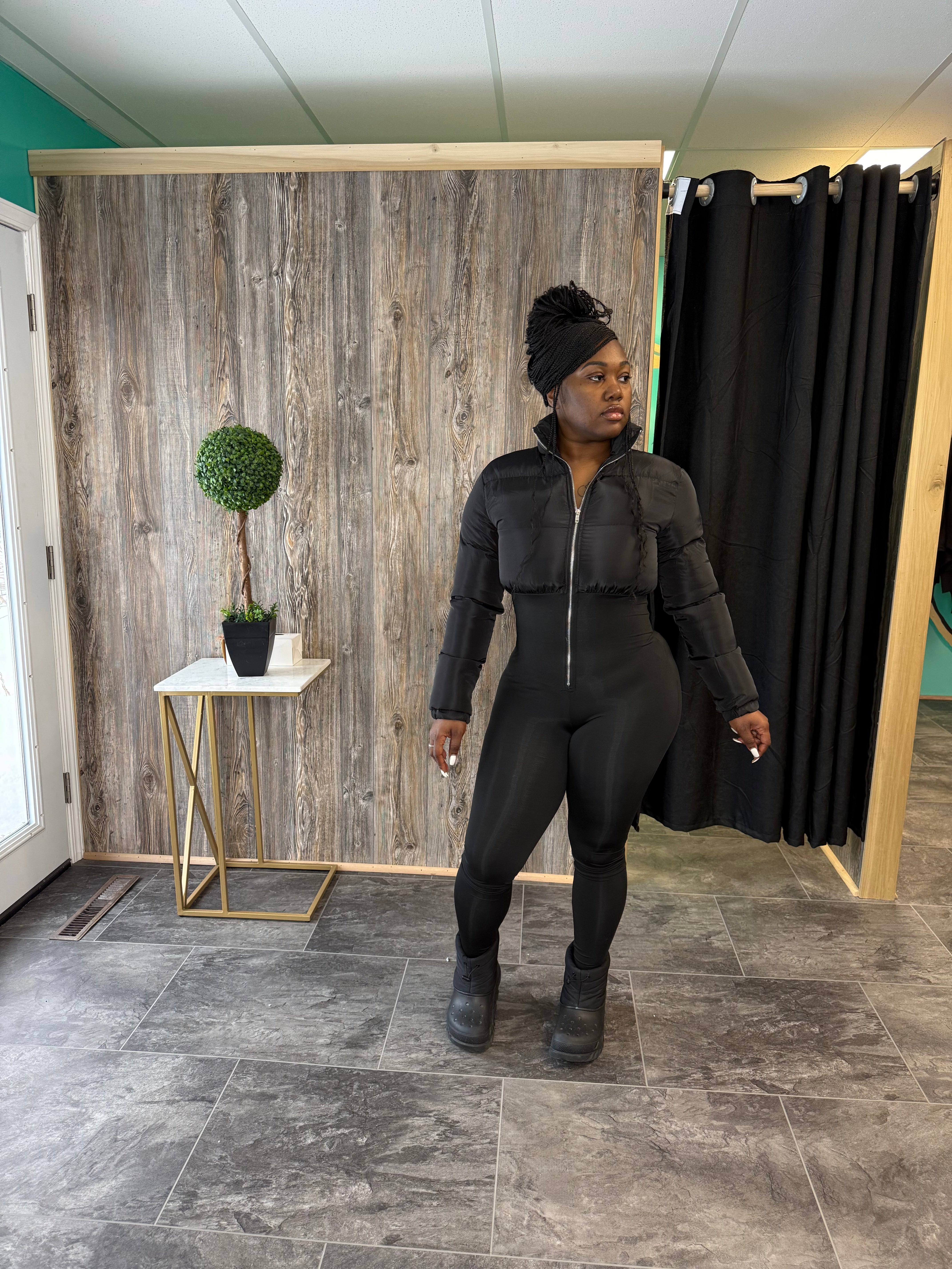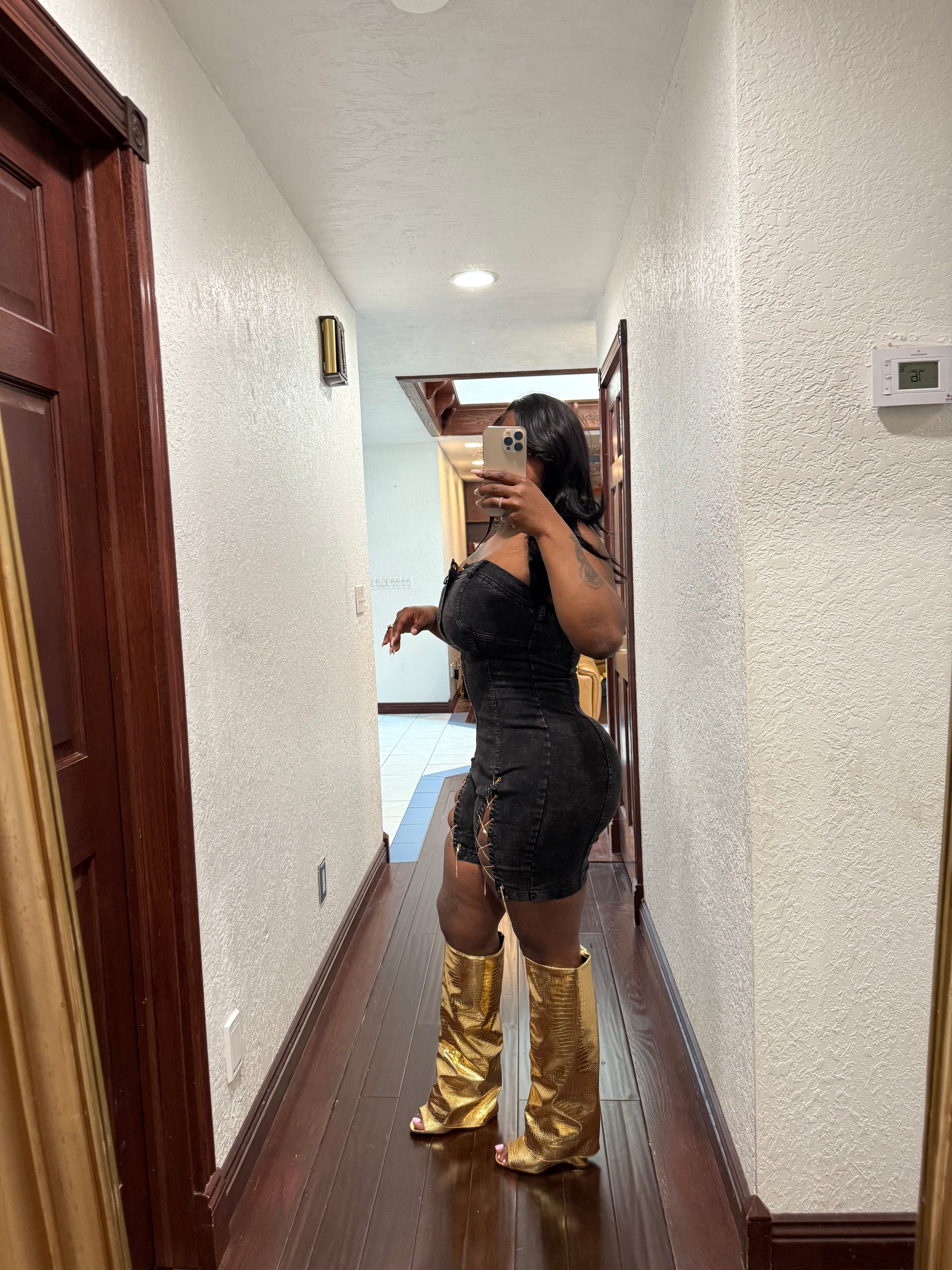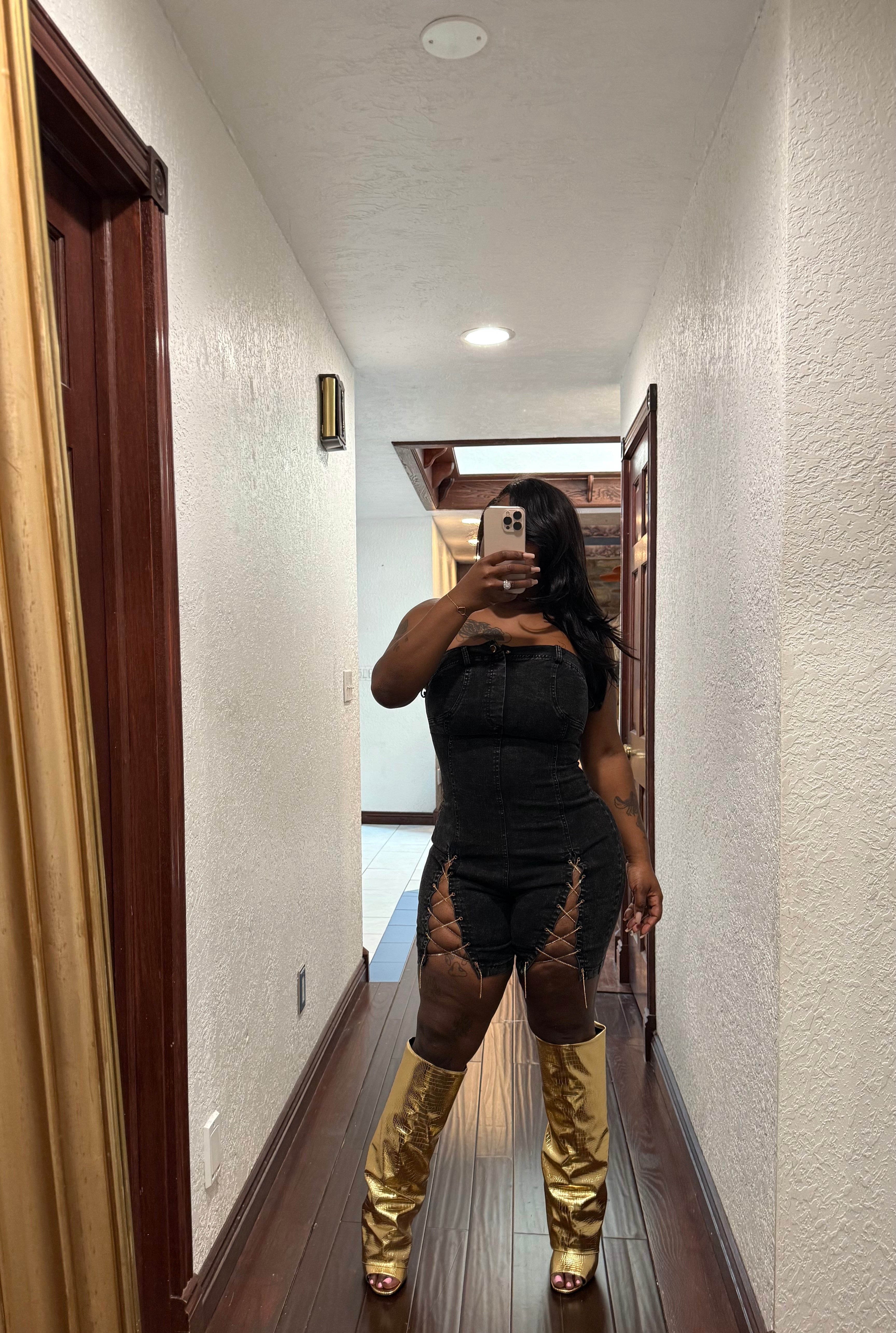 Black denim romper