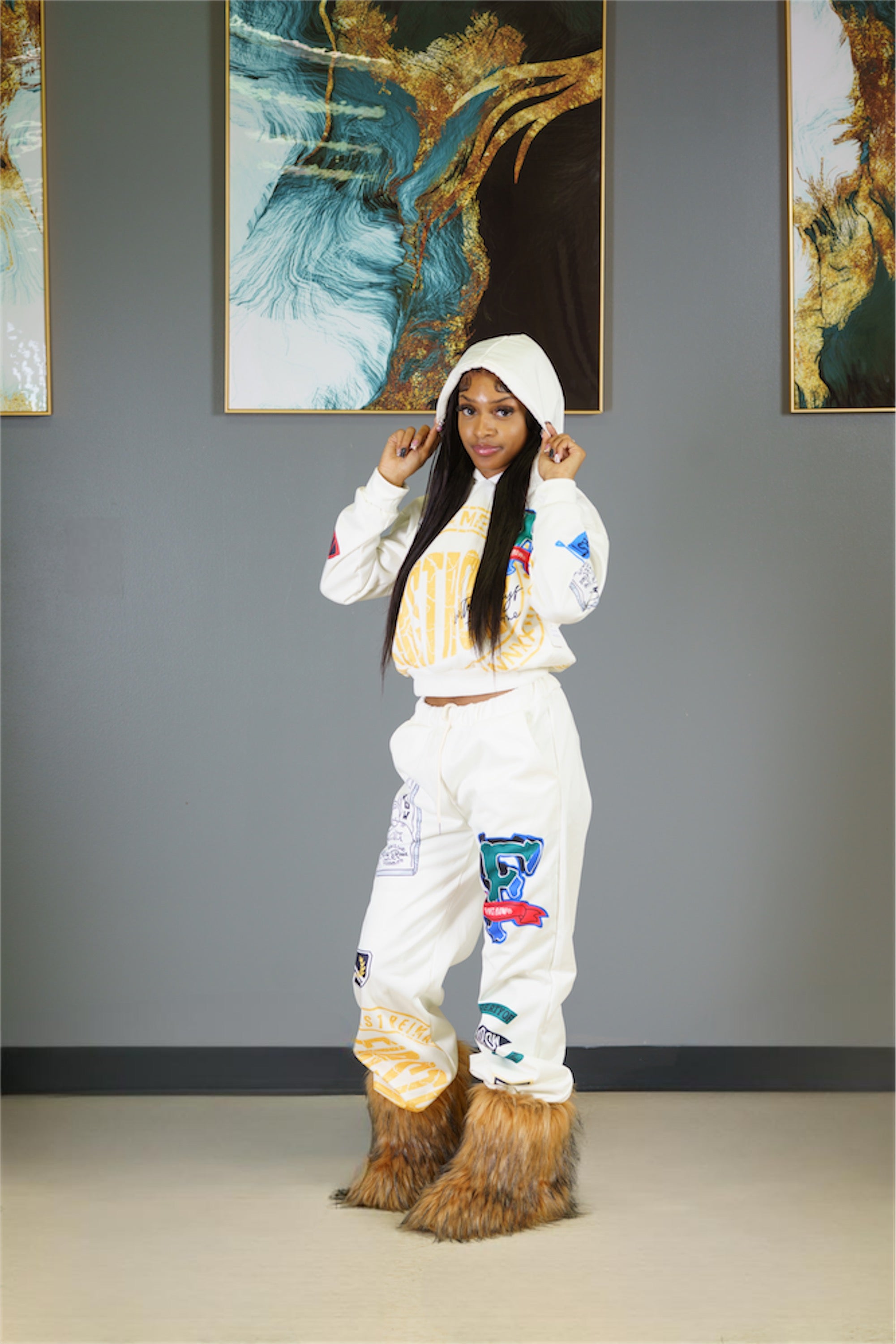 Jogging set with its colorful details is stylish and comfy for everyday wear.