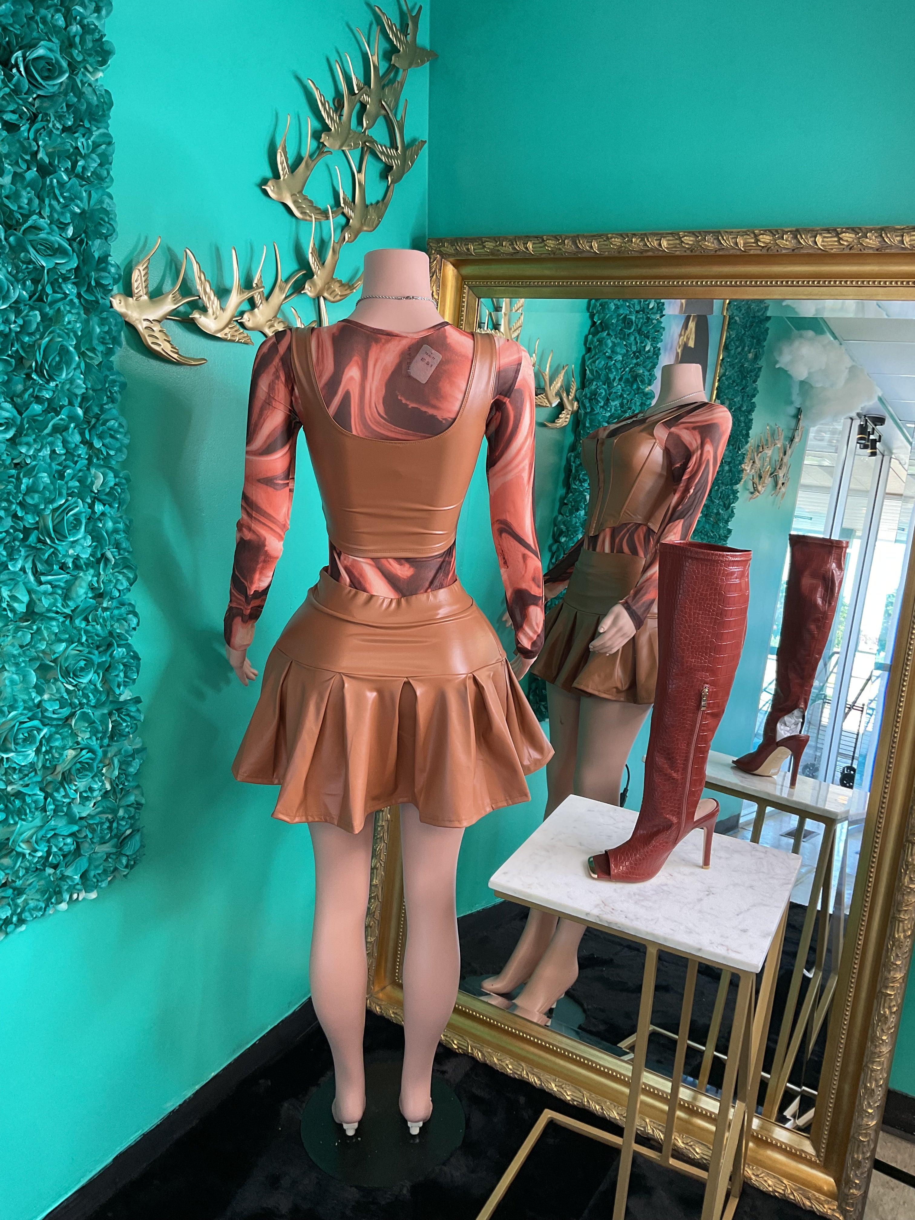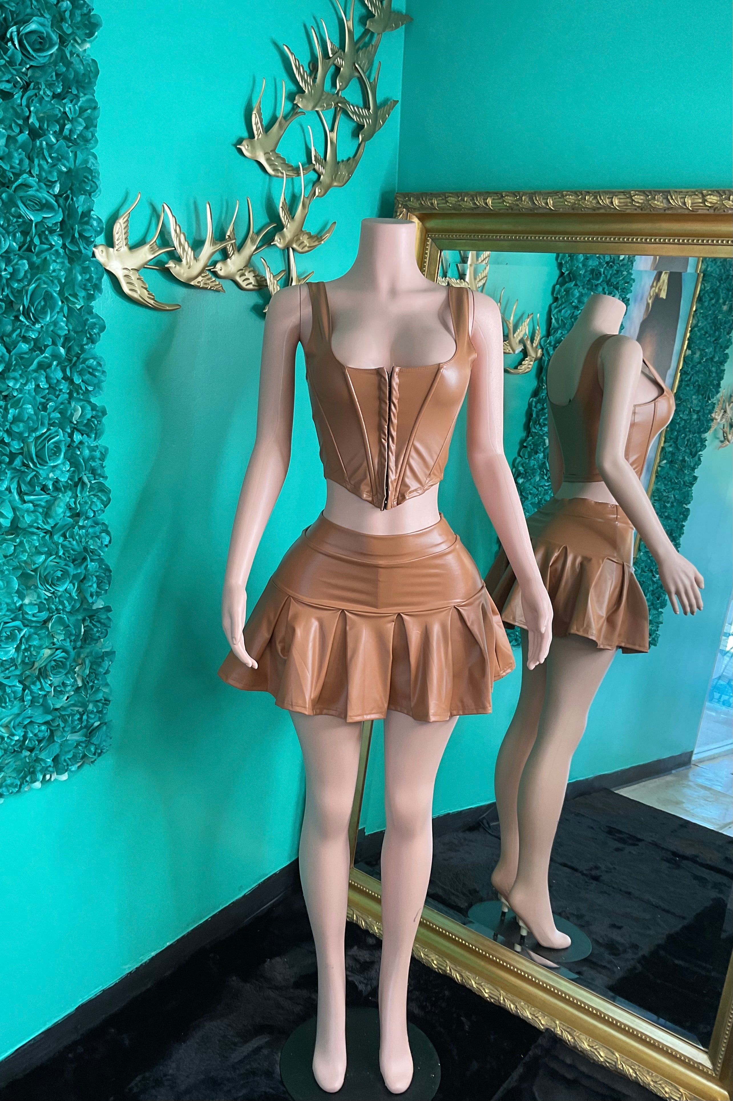Tan Peanut Butter Top paired with skort is a perfect blend of chic and sporty elegance. Its corset-style tank designed to make you look effortlessly stylish.
